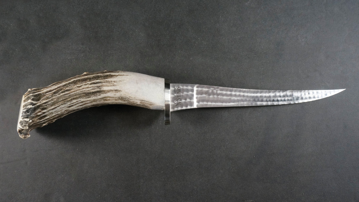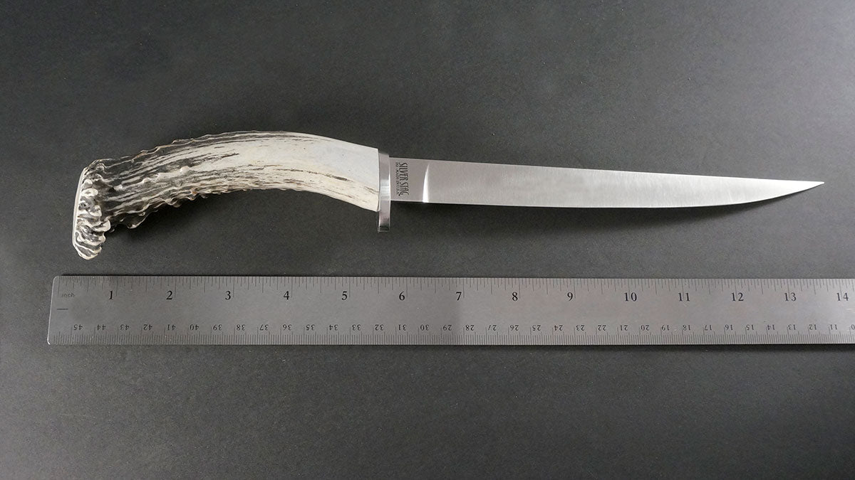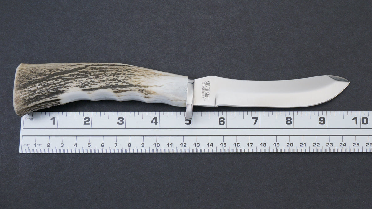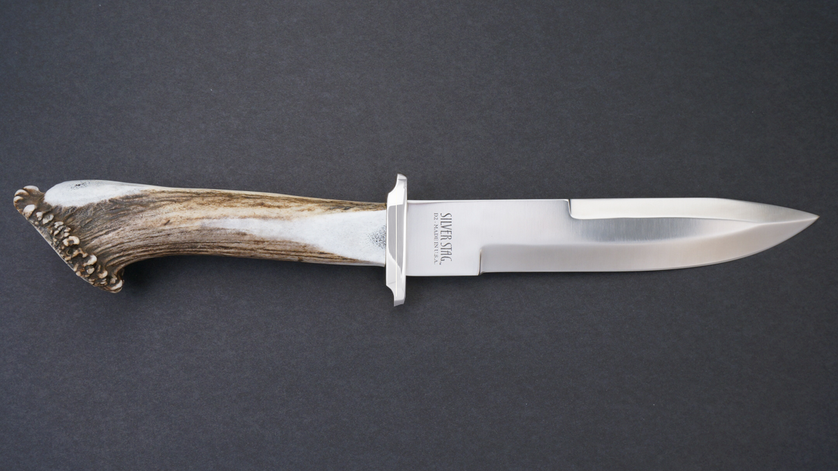 Signature Outdoor Series - D2 steel is an air hardening, high carbon, and high chromium tool steel possessing extremely high wear resisting properties. D2 steel is commonly used in the machining industries to manufacture dies and punches that repeatedly cut other materials. D2 Steel is extremely tough and durable! The high chromium content provides good corrosion resistance, (but it can and will rust if it is not properly taken care of). The blades are heat treated to a 62 Rockwell hardness and are guaranteed to retain their factory edge for extended periods of heavy use. When it does come time to re-sharpen, the blades will hone to a razor edge. In our professional opinion, there is nothing better than D2 steel. The following Signature Outdoor Series features North American Deer and Elk antler handles in your choice of crown/burr or beam/'elk stick' style.